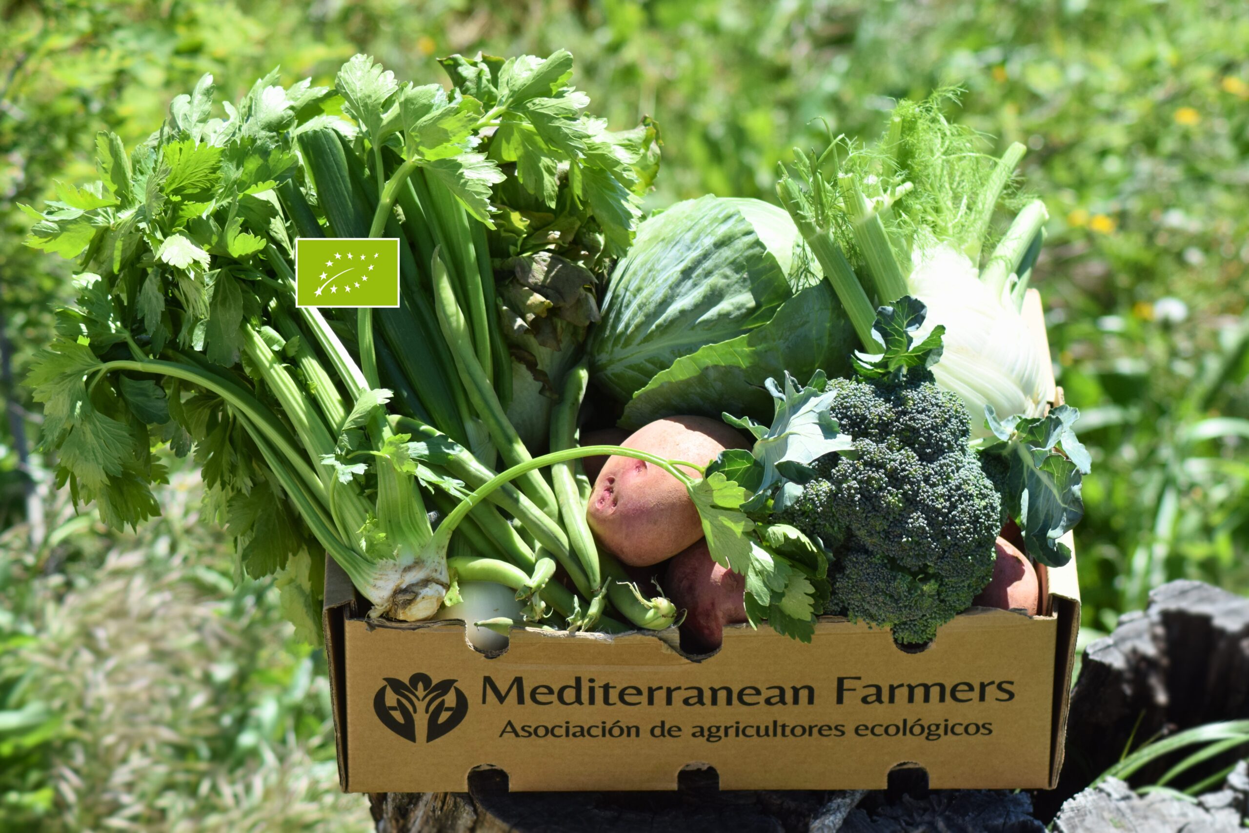 Caja de verduras ecológicas de invierno cultivadas por Antonio en Periana (Axarquía). Disponible en 5 kg y 10 kg, recién cosechadas y enviadas directas del agricultor a tu casa.