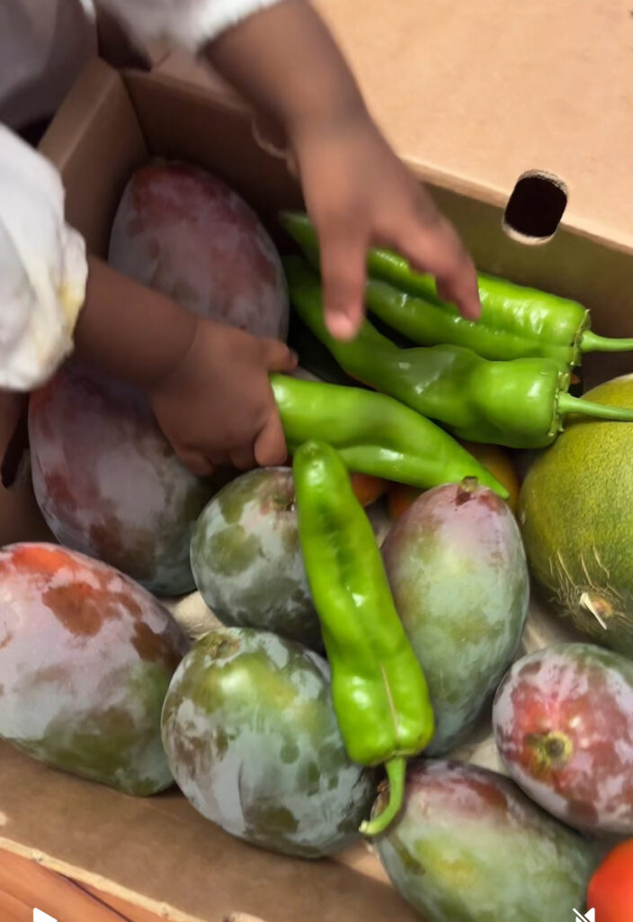 Caja con verduras ecológicas y mangos ecológicos rescatados. Sabor auténtico, precio justo y cero desperdicio con la Patrulla Verde.