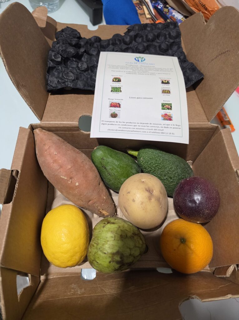 La Caja Descubre Mediterranean Farmers es una caja de 2,5kg de fruta y verdura ecológica pensada para quienes quieren conocer nuestros productos por primera vez o compartirlos con otras personas.