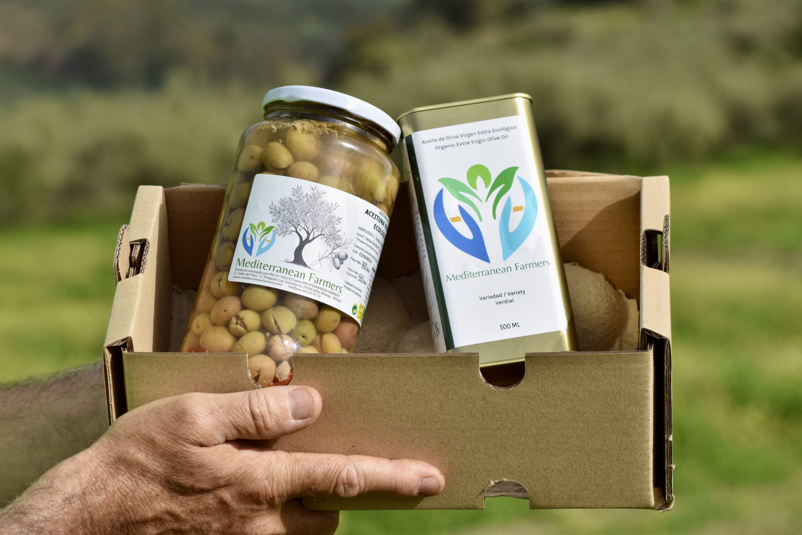 Incluye aceite de oliva virgen extra Verdial y aceitunas verdes Verdial partidas, ambos procedentes de la finca ecológica y regenerativa de Antonio en Periana.