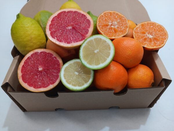 - Caja de 6Kg: 2Kg de pomelo, 1Kg de limón y 3Kg de mandarina